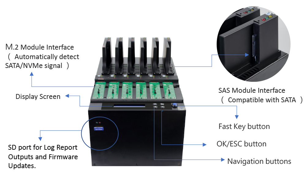 1-5 Auto-detect NVMe/SAS PCIe SSD Duplicator (PHS600SAS)
