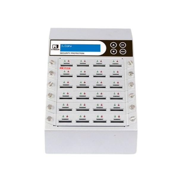 The most cutting edge in duplication technology, our Intelligent 9 series SD/Micro SD duplicator is professional, standalone and efficient. It can duplicate a full range of SD/MicroSD memory cards starting from 7 and up to 119 targets. Speed and flexibility are key factors in satisfying customer needs. Effortless use means a PC or other software are not required; the SD/MicroSD memory card duplicator provides a reliable, worry-free copy environment for users without the risk of virus corruption. This Combo SD/MicroSD duplicator series is integrated with a high-speed compare function to ensure data copies with 100% accuracy. It also boasts quick format capabilities. These features greatly increase efficiency and production productivity.
